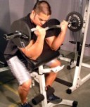 This exercise puts all the emphasis on the biceps by isolating them. If you can do more than 7, increase the weight until you can barely get 5 reps. Take your time and pay attention to form. Keep tension on the biceps by stopping short. You do not want to come all the way up. Stop when your forearms are a little past 90 degrees to your upper arms. Take about 5 seconds to contract and 10 to get back to start position. If you use a straight bar, try it without wrapping your thumbs around the bar. This will really blast your biceps! Using a wide grip will develop the outer biceps, in effect, making your arms look bigger. However, you still must develop the dense inner biceps. Perform 4-7 reps |